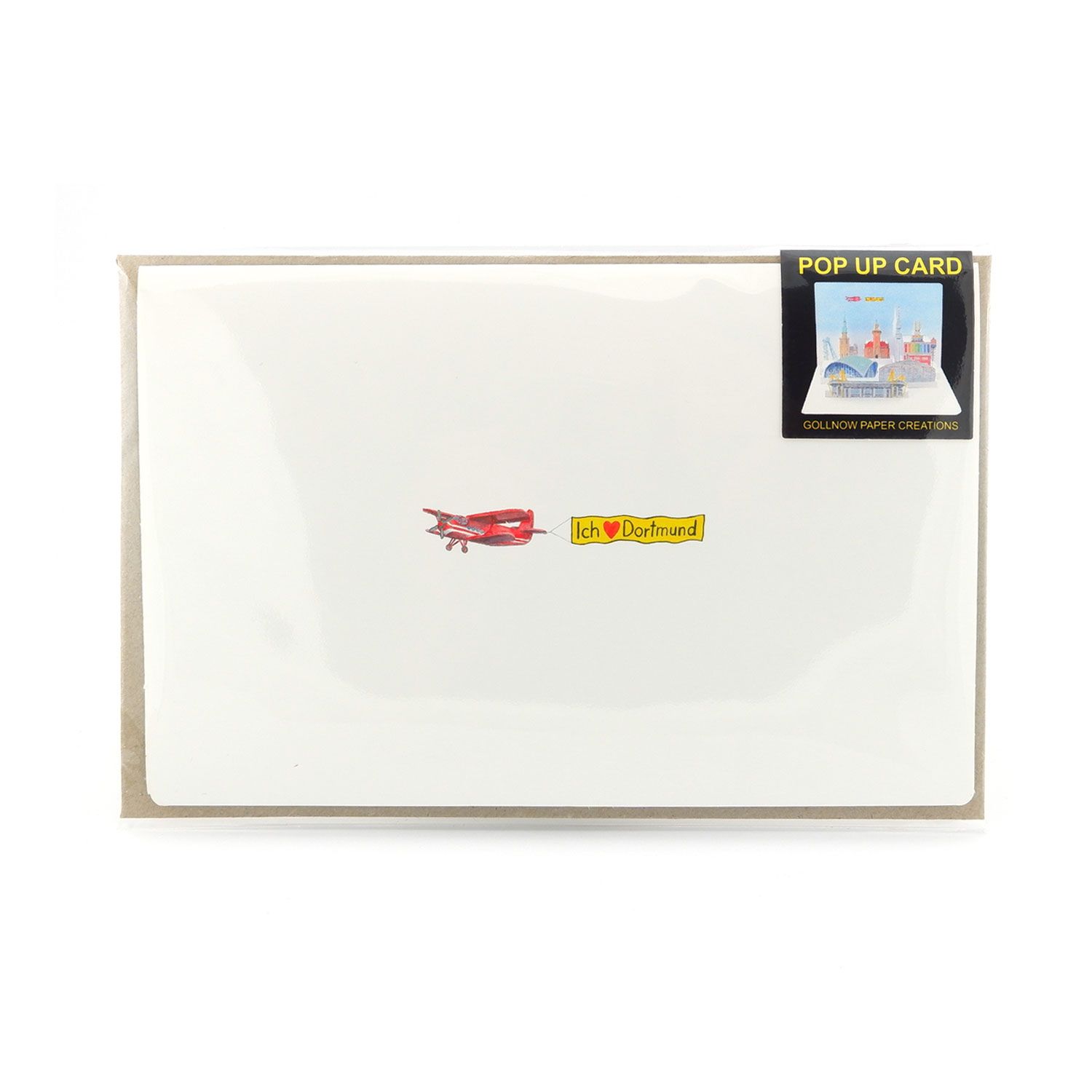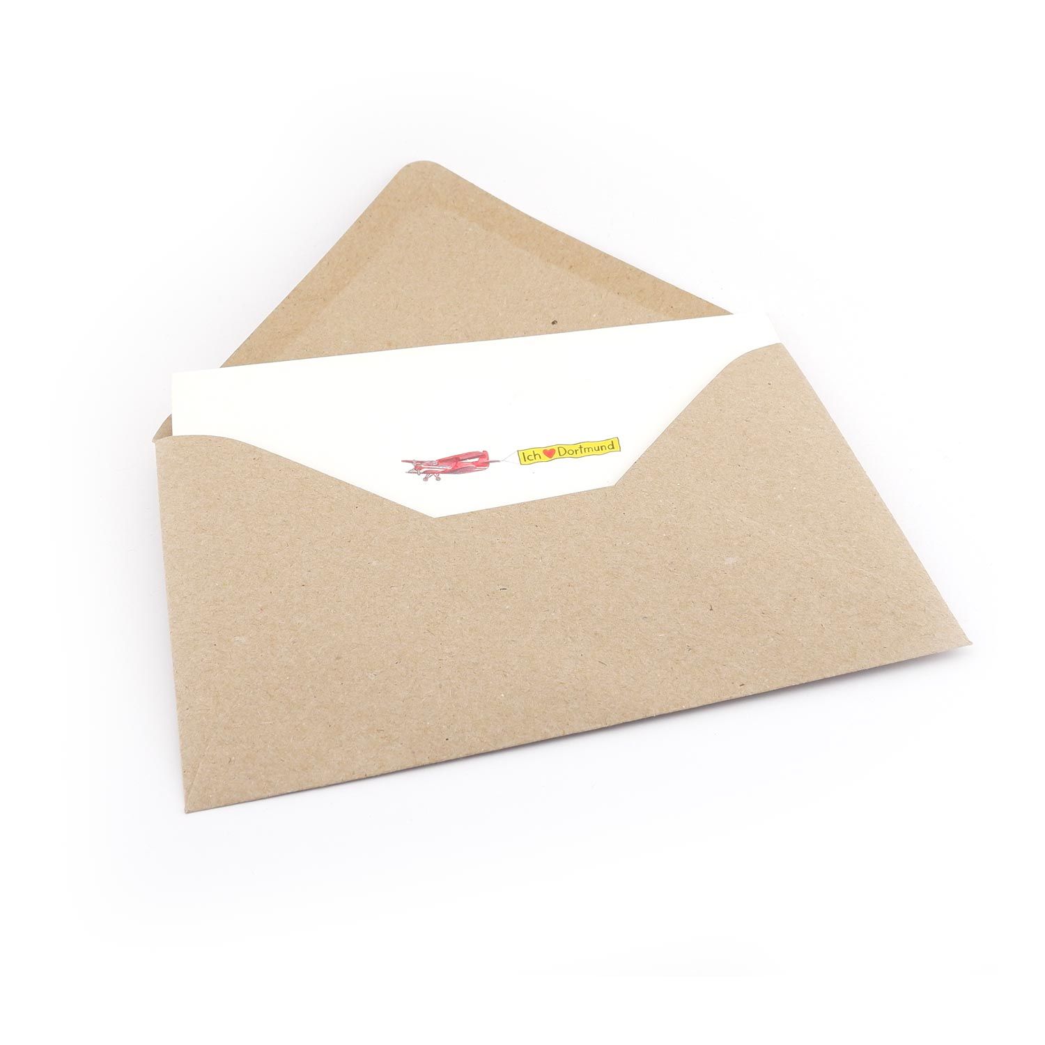 Viel Arbeit habe ich in die Entwicklung einer Pop-up-Karte von und für Dortmund gesteckt. Jedes Gebäude habe ich aquarelliert. Ich wollte unbedingt eine klassiche Pop-up-Karte entwerfen, bei der sich alle Motive beim Öffnen der Karte aus einem Bogen Papier auffalten und kein Gebäude eingeklebt ist. Ich habe versucht, die für mich wichtigsten Gebäude darzustellen. Es gibt natürlich noch viel mehr Sehenswürdigkeiten in Dortmund, aber der Platz auf der Karte hat nicht mehr Gebäude zugelassen. Vielleicht folgt ja deshalb irgendwann noch eine zweite Karte. Die Pop-up-Karte ist auf der Rückseite beschreibbar und wird mit einem hochwertigen Couvert geliefert.