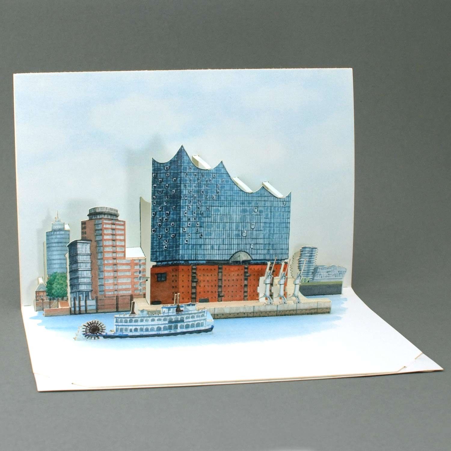 Phantastic pop up card oh the Elbphilarmonie in hamburg. The card has a size of 10,5 cm x 15,5 cm and will be delivered with an envelope.